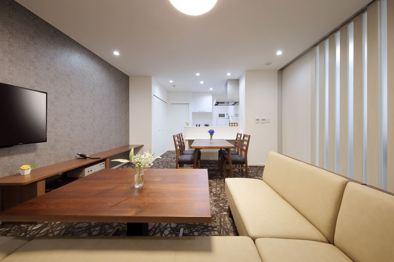 - 家族室(和洋室)・寝室(ツイン)・キッチン・浴室付き