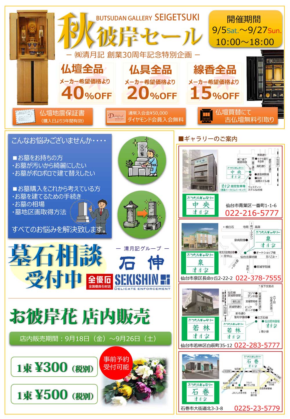 | □開催店舗 | ぶつだんギャラリー 中央清月記(青葉区一番町1-1-6) ぶつだんギャラリー 若林清月記(若林区白萩町35-12) |