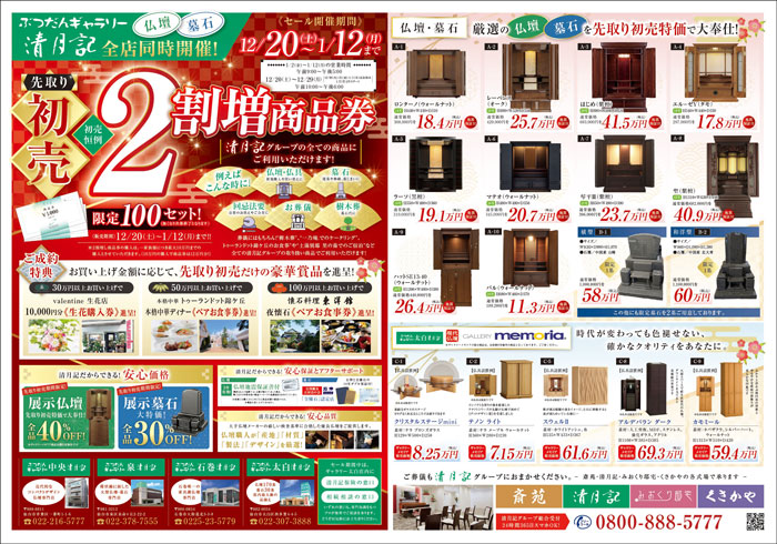 ぶつだんギャラリー清月記「先取り初売」のご案内