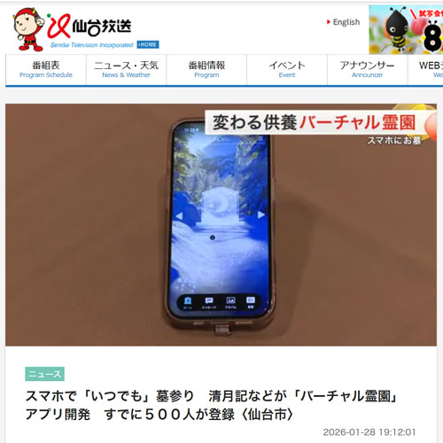 スマホで「いつでも」墓参り 清月記などが「バーチャル霊園」アプリ開発 すでに500人が登録〈仙台市〉(2026/01/28)